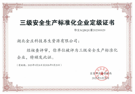 公司順利通過三級安全生產(chǎn)標(biāo)準(zhǔn)化企業(yè)認(rèn)證